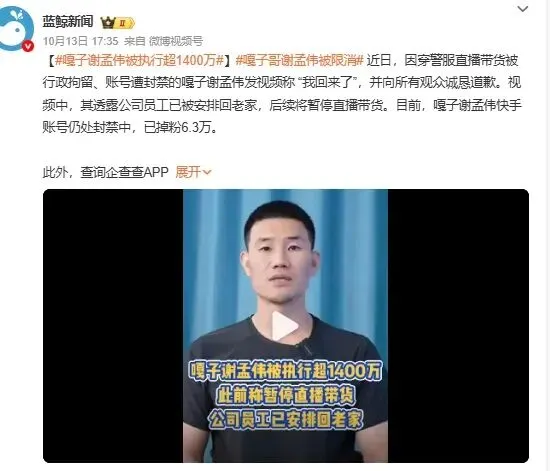 比起张雪峰,嘎子哥谢孟伟的“复活”更显荒诞。穿警服带货被行拘7天,这种突破法律底线的错误,本应让他彻底淡出公众视野。