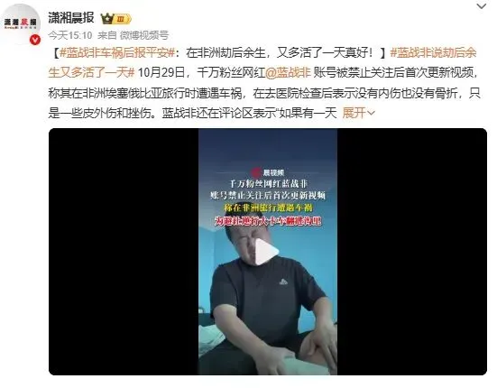 而蓝战非的回归带着戏剧性。这个曾宣称“年入九位数都小看我”的网红,解封后第一条视频却是非洲车祸后的报平安,一句“多活一天真好”赚足同情。